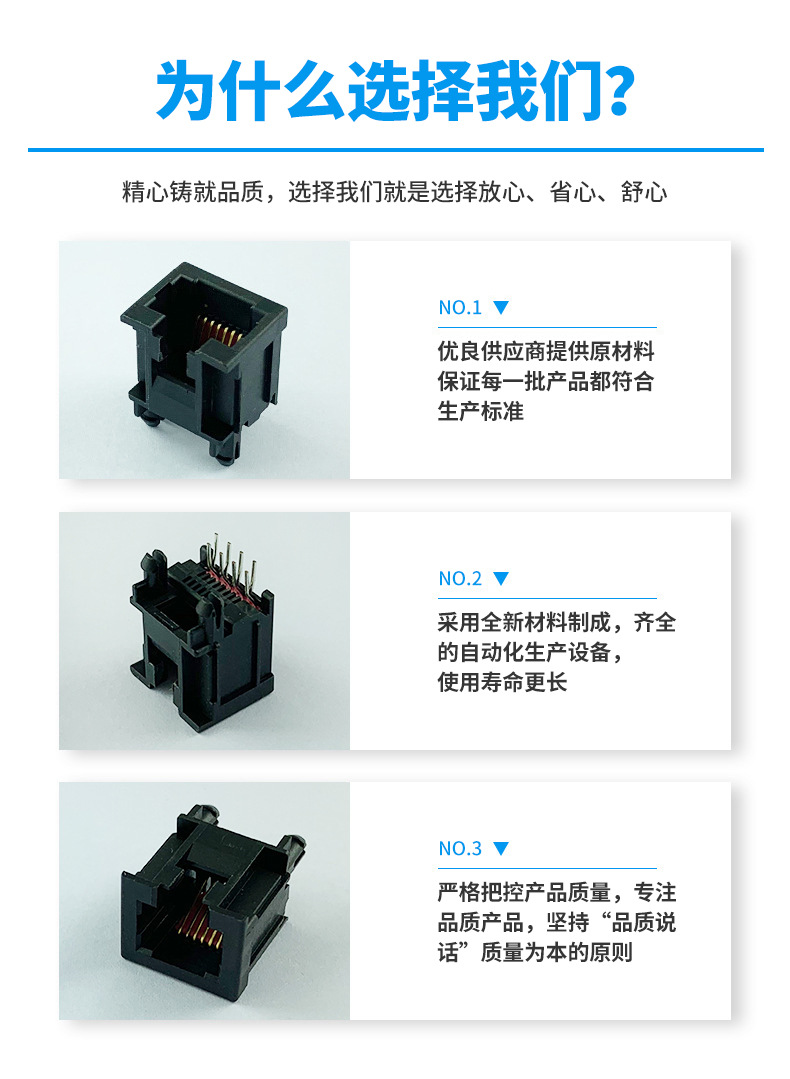 本公司提供優(yōu)良的RJ11、RJ12電話插接件、RJ45網(wǎng)絡(luò)插接件,耐環(huán)境RJ45防水連接器,防水電連接器及其它精密連接器,產(chǎn)品應(yīng)用于網(wǎng)絡(luò)通訊(電腦主板,網(wǎng)絡(luò)交換機,路由器,電信設(shè)備)、惡劣環(huán)境下數(shù)據(jù)傳輸與控制及電源信號傳輸與控制(戶外LED顯示屏、機器控制、工業(yè)程序控制等)
