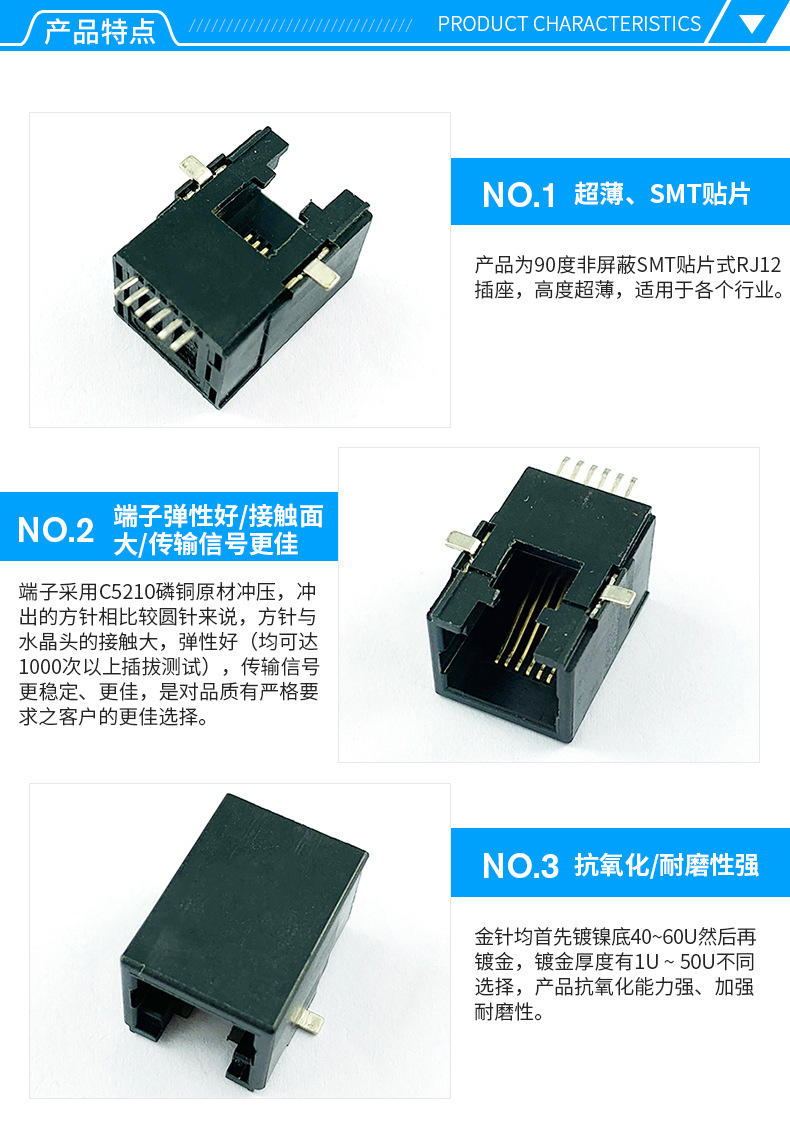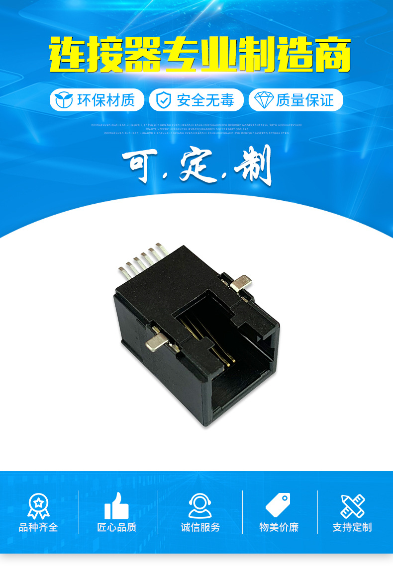 本公司提供優(yōu)良的RJ11、RJ12電話插接件、RJ45網(wǎng)絡插接件,耐環(huán)境RJ45防水連接器,防水電連接器及其它精密連接器,產(chǎn)品應用于網(wǎng)絡通訊(電腦主板,網(wǎng)絡交換機,路由器,電信設備)、惡劣環(huán)境下數(shù)據(jù)傳輸與控制及電源信號傳輸與控制(戶外LED顯示屏、機器控制、工業(yè)程序控制等)