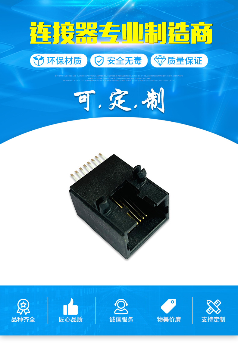 本公司提供優(yōu)良的RJ11、RJ12電話插接件、RJ45網(wǎng)絡插接件,耐環(huán)境RJ45防水連接器,防水電連接器及其它精密連接器,產品應用于網(wǎng)絡通訊(電腦主板,網(wǎng)絡交換機,路由器,電信設備)、惡劣環(huán)境下數(shù)據(jù)傳輸與控制及電源信號傳輸與控制(戶外LED顯示屏、機器控制、工業(yè)程序控制等)