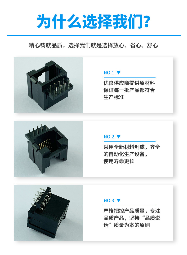 本公司提供優(yōu)良的RJ11、RJ12電話插接件、RJ45網(wǎng)絡(luò)插接件,耐環(huán)境RJ45防水連接器,防水電連接器及其它精密連接器,產(chǎn)品應(yīng)用于網(wǎng)絡(luò)通訊(電腦主板,網(wǎng)絡(luò)交換機(jī),路由器,電信設(shè)備)、惡劣環(huán)境下數(shù)據(jù)傳輸與控制及電源信號傳輸與控制(戶外LED顯示屏、機(jī)器控制、工業(yè)程序控制等)