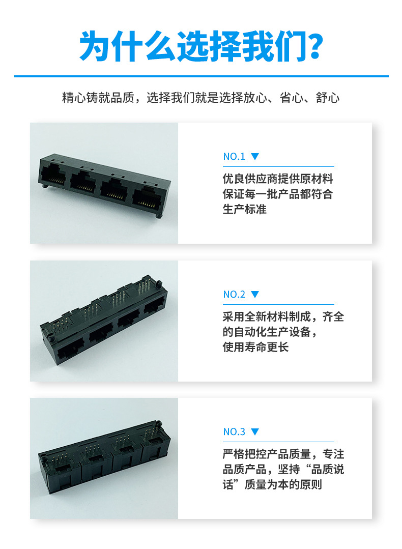 本公司提供優(yōu)良的RJ11、RJ12電話插接件、RJ45網(wǎng)絡(luò)插接件,耐環(huán)境RJ45防水連接器,防水電連接器及其它精密連接器,產(chǎn)品應(yīng)用于網(wǎng)絡(luò)通訊(電腦主板,網(wǎng)絡(luò)交換機(jī),路由器,電信設(shè)備)、惡劣環(huán)境下數(shù)據(jù)傳輸與控制及電源信號傳輸與控制(戶外LED顯示屏、機(jī)器控制、工業(yè)程序控制等)