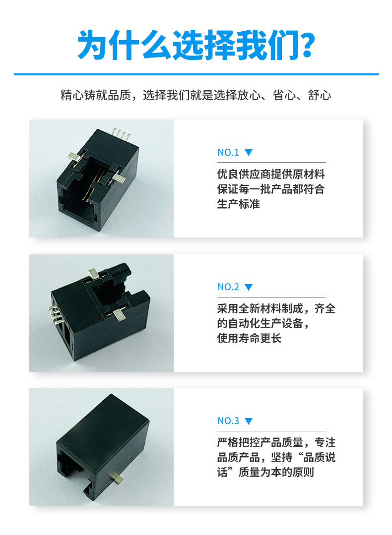 本公司提供優(yōu)良的RJ11、RJ12電話插接件、RJ45網(wǎng)絡(luò)插接件,耐環(huán)境RJ45防水連接器,防水電連接器及其它精密連接器,產(chǎn)品應(yīng)用于網(wǎng)絡(luò)通訊(電腦主板,網(wǎng)絡(luò)交換機(jī),路由器,電信設(shè)備)、惡劣環(huán)境下數(shù)據(jù)傳輸與控制及電源信號(hào)傳輸與控制(戶(hù)外LED顯示屏、機(jī)器控制、工業(yè)程序控制等)
