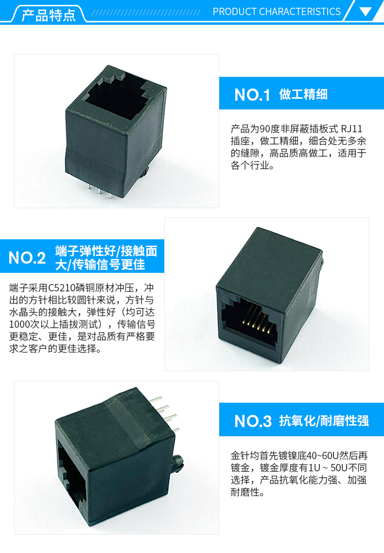 本公司提供優(yōu)良的RJ11、RJ12電話(huà)插接件、RJ45網(wǎng)絡(luò)插接件,耐環(huán)境RJ45防水連接器,防水電連接器及其它精密連接器,產(chǎn)品應(yīng)用于網(wǎng)絡(luò)通訊(電腦主板,網(wǎng)絡(luò)交換機(jī),路由器,電信設(shè)備)、惡劣環(huán)境下數(shù)據(jù)傳輸與控制及電源信號(hào)傳輸與控制(戶(hù)外LED顯示屏、機(jī)器控制、工業(yè)程序控制等)