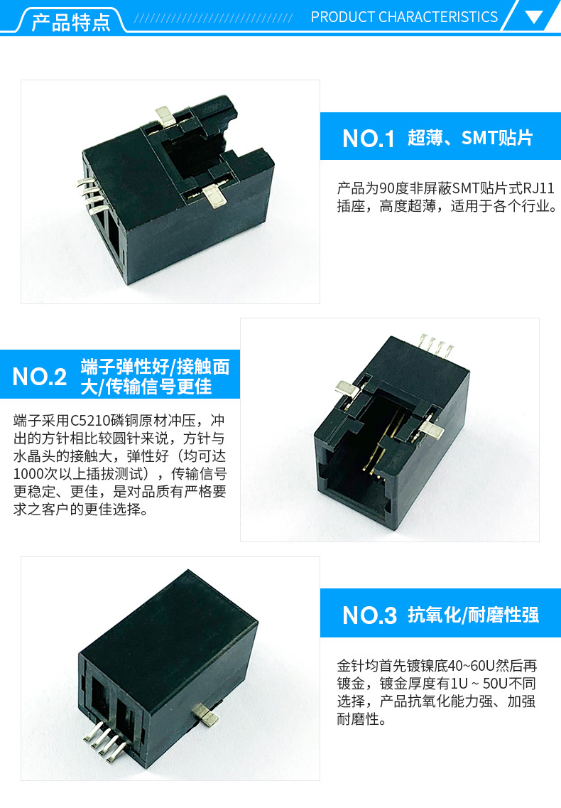 本公司提供優(yōu)良的RJ11、RJ12電話插接件、RJ45網(wǎng)絡(luò)插接件,耐環(huán)境RJ45防水連接器,防水電連接器及其它精密連接器,產(chǎn)品應(yīng)用于網(wǎng)絡(luò)通訊(電腦主板,網(wǎng)絡(luò)交換機(jī),路由器,電信設(shè)備)、惡劣環(huán)境下數(shù)據(jù)傳輸與控制及電源信號(hào)傳輸與控制(戶外LED顯示屏、機(jī)器控制、工業(yè)程序控制等)