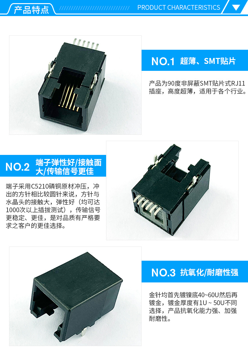 本公司提供優(yōu)良的RJ11、RJ12電話插接件、RJ45網(wǎng)絡(luò)插接件,耐環(huán)境RJ45防水連接器,防水電連接器及其它精密連接器,產(chǎn)品應(yīng)用于網(wǎng)絡(luò)通訊(電腦主板,網(wǎng)絡(luò)交換機(jī),路由器,電信設(shè)備)、惡劣環(huán)境下數(shù)據(jù)傳輸與控制及電源信號(hào)傳輸與控制(戶外LED顯示屏、機(jī)器控制、工業(yè)程序控制等)
